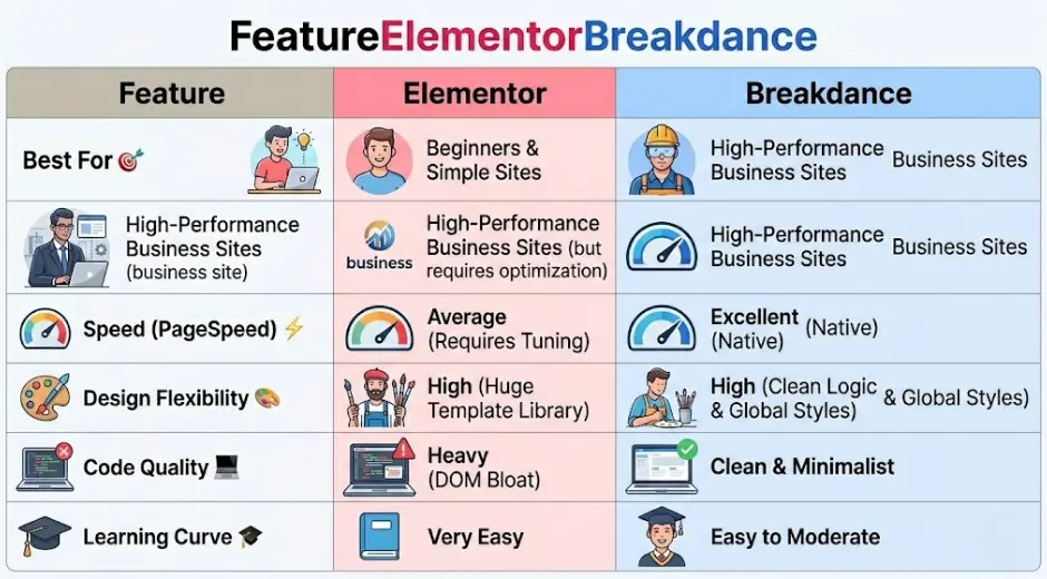 When building a business website, your choice of tools directly impacts your conversion rates, SEO rankings, and long-term maintenance costs. 💸 In the current market, the Elementor vs Breakdance debate is more relevant than ever for professional results. For years, Elementor has been the industry giant, but Breakdance has emerged as the go-to choice for performance-focused developers who prioritize speed and clean code. ⚡